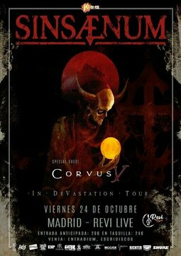 Una gira europea de Sinsaenum llamada “In Devastation Tour 2025”, que tiene varias paradas en nuestros escenarios. Sinsaenum actuará el 22 de octubre en los Estudios Groove de Portugalete y el 24 de octubre en Revi Live de Madrid. En pocos días, anunciaremos las bandas invitadas.